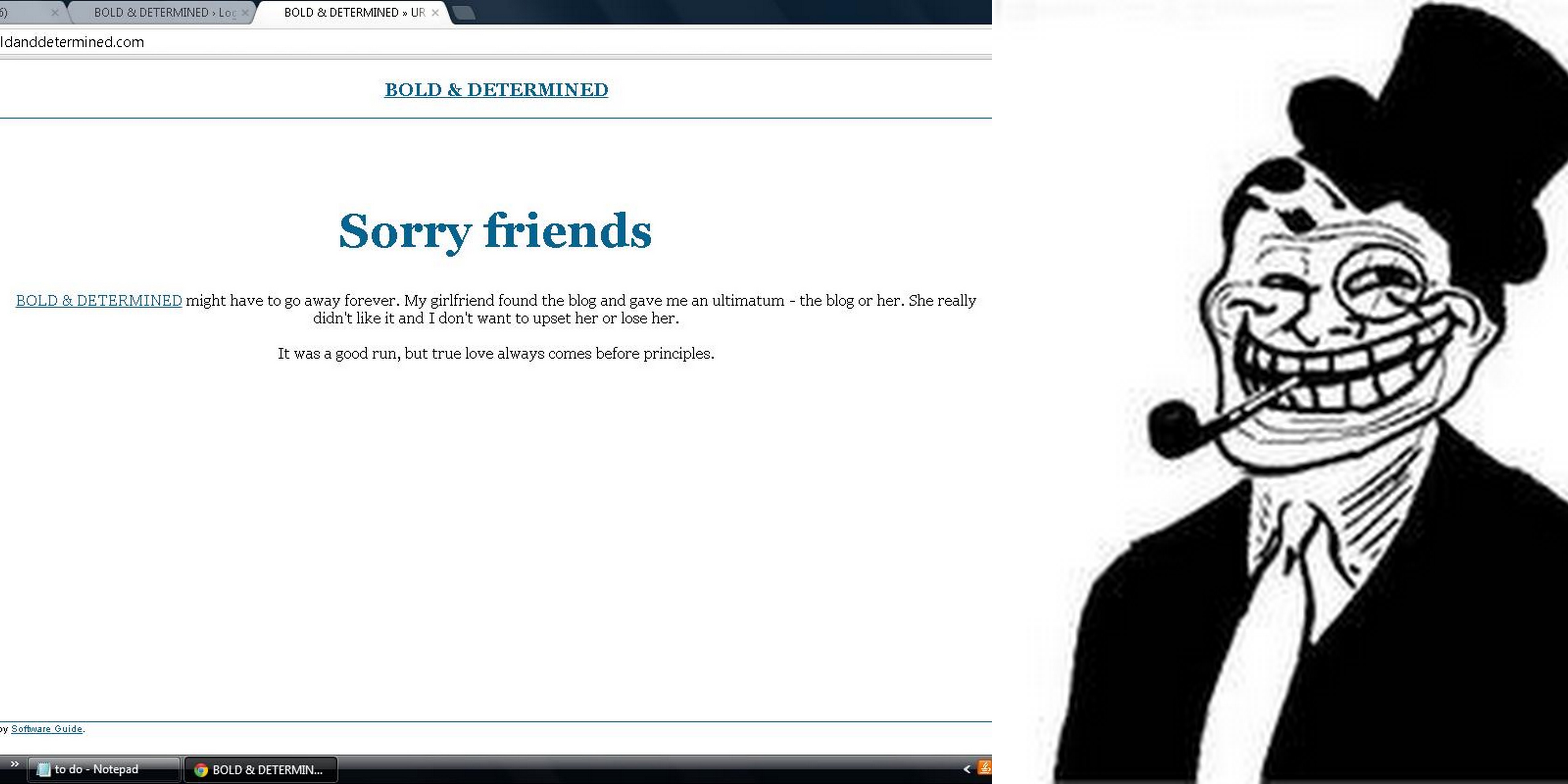 Great to see Bold & Determined back. You didn’t fool me for a second though, no way would Victor Pride give up his principals for a women.