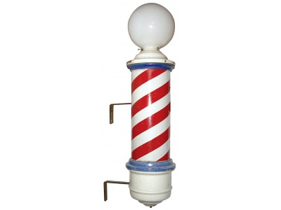 To find a barber shop look for the red and white Barber’s pole.