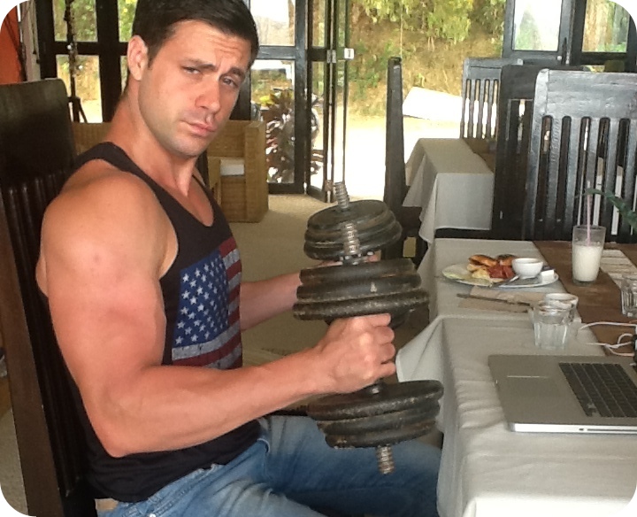 Last photo: “Did you really believe I was gonna leave these barbells home?”