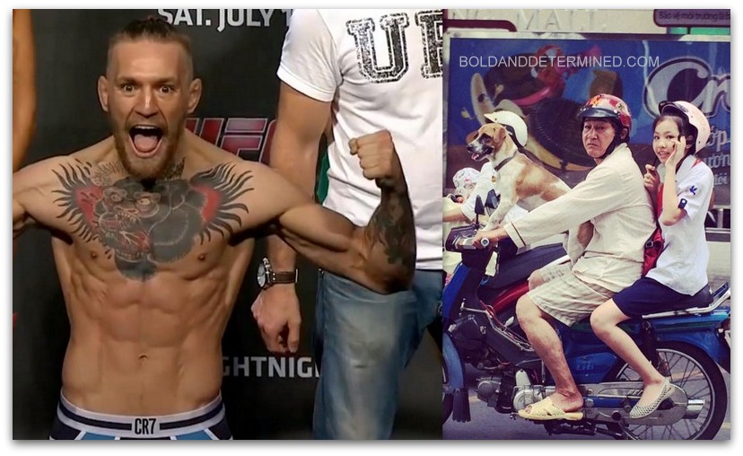 Pictured: UFC fighter Conor McGregor on the left, a picture I took in Vietnam on the right
