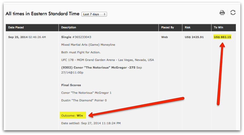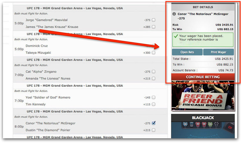 To make $882.15 I had to bet $2,425.91 for Conor McGregor to win.