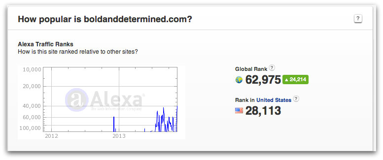 Today Bold and Determined is one of the most popular websites in the entire world, verified by industry leader alexa.com.