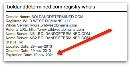 Do one thing right now. Go to whois.com and type in the address for your favorite websites. You can see when the domain was registered and when it is set to expire. You can see which websites are serious about long term planning and you can see which websites are operating as “fly by night” operations. Most websites are set to expire within one year. Bold and Determined is set to expire 8 years from now.