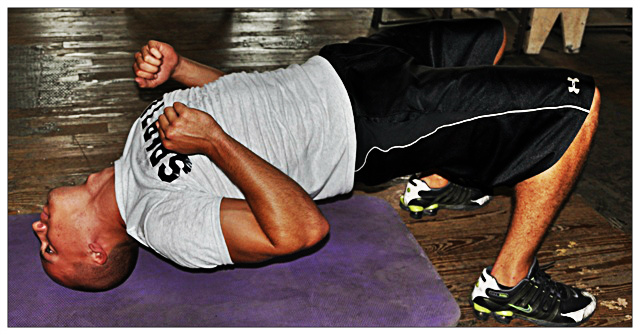 The wrestlers bridge is mostly a neck exercise but it also works your entire core. Most people don't even think of training their neck, which is too bad for them. Having a strong, thick, powerful neck is probably the #1 indicator of someone who possesses immense power. Having a muscular body but a little neck is unsightly and goofy looking. Having a thick neck pulsing with muscle is impressive even if the guy is skinny everywhere else.