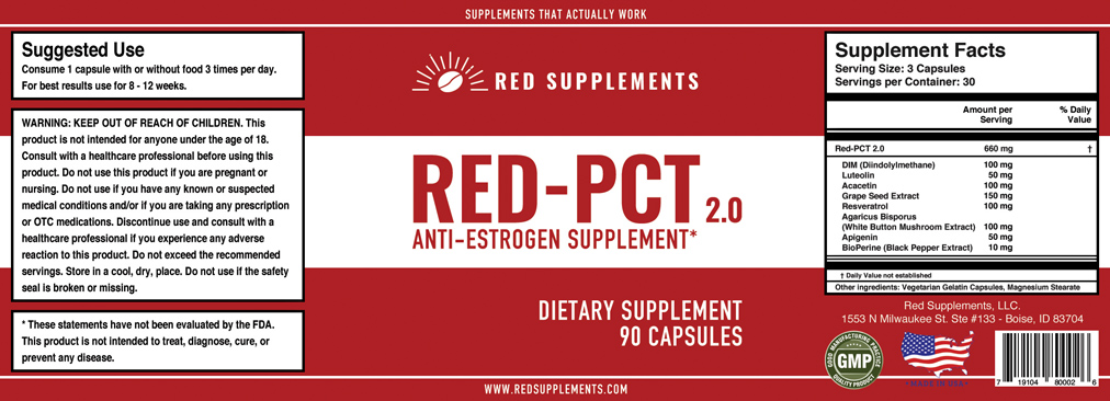 RED-PCT 2.0 IS AN ALL NATURAL, ANTI-ESTROGEN, AROMATASE INHIBITING SUPPLEMENT.