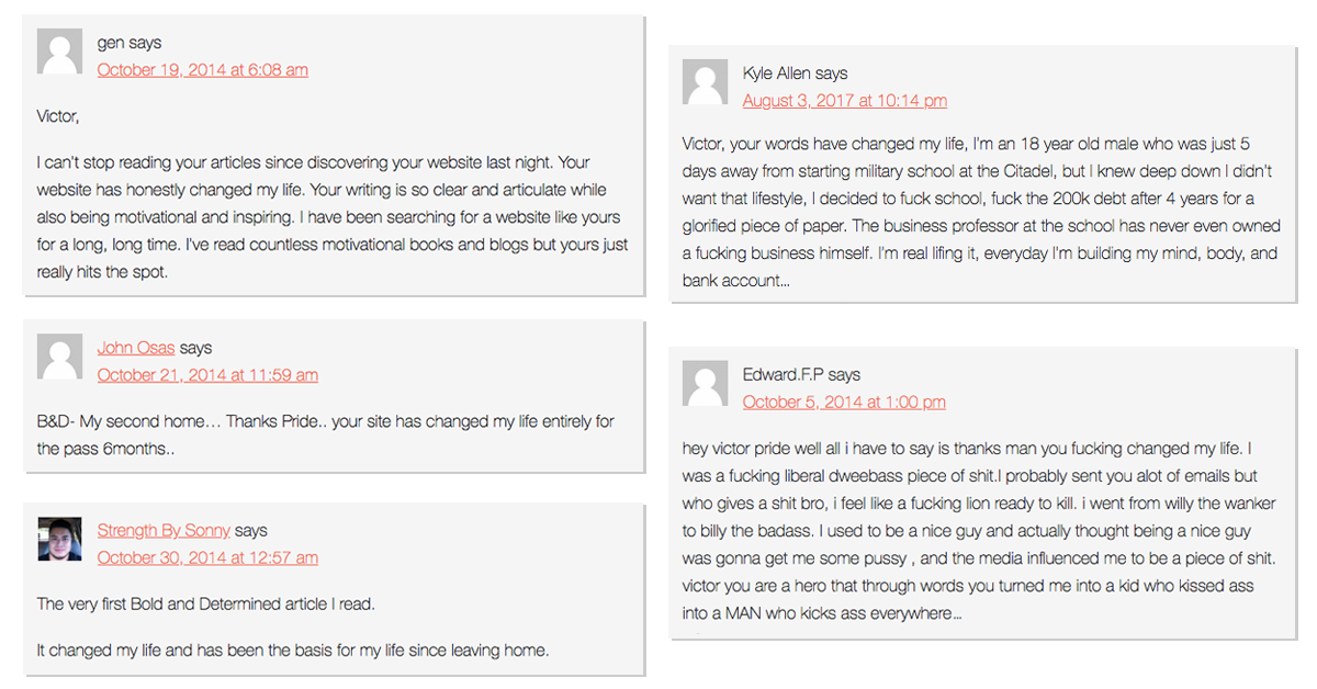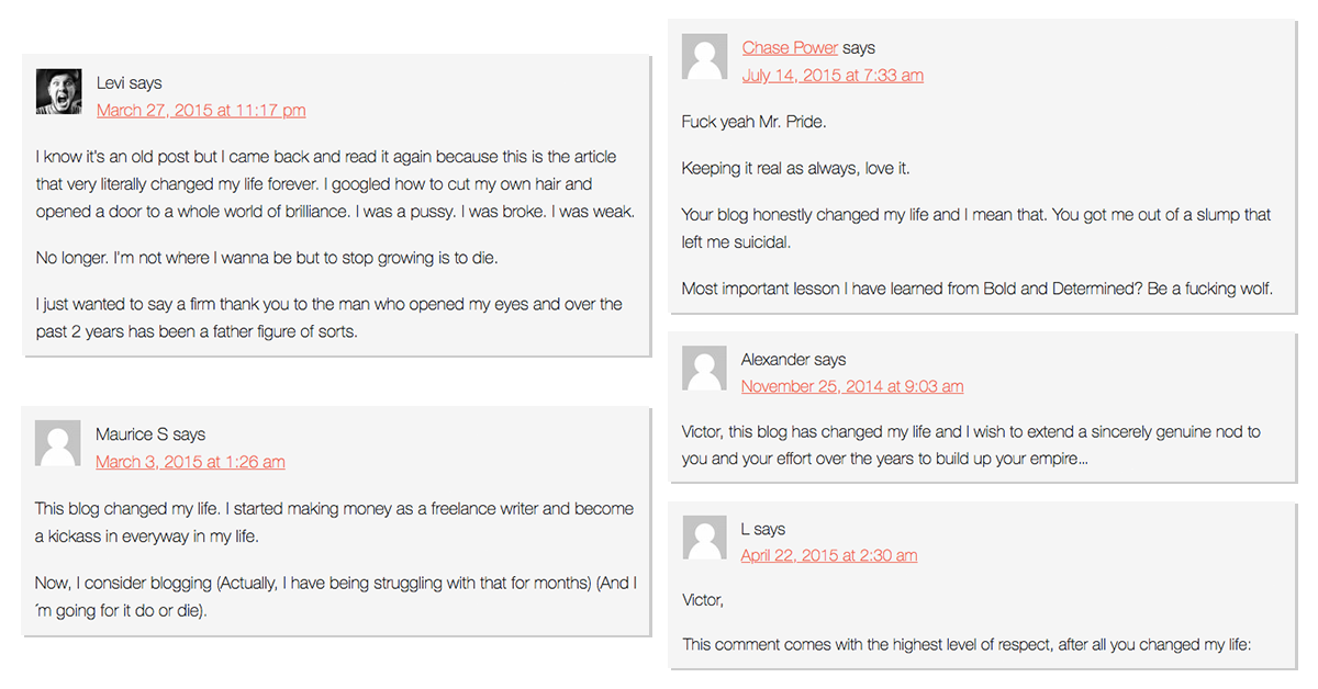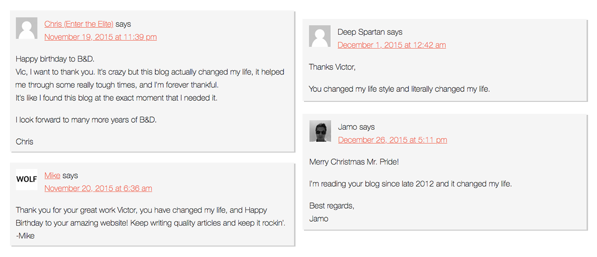You’re actually a hero because you’ve changed the lives of so many people. If it wasn’t for B&D, then I wouldn’t be so far today. I must say that I actually prefer your older articles. I’m reading B&D since 2013 by the way.