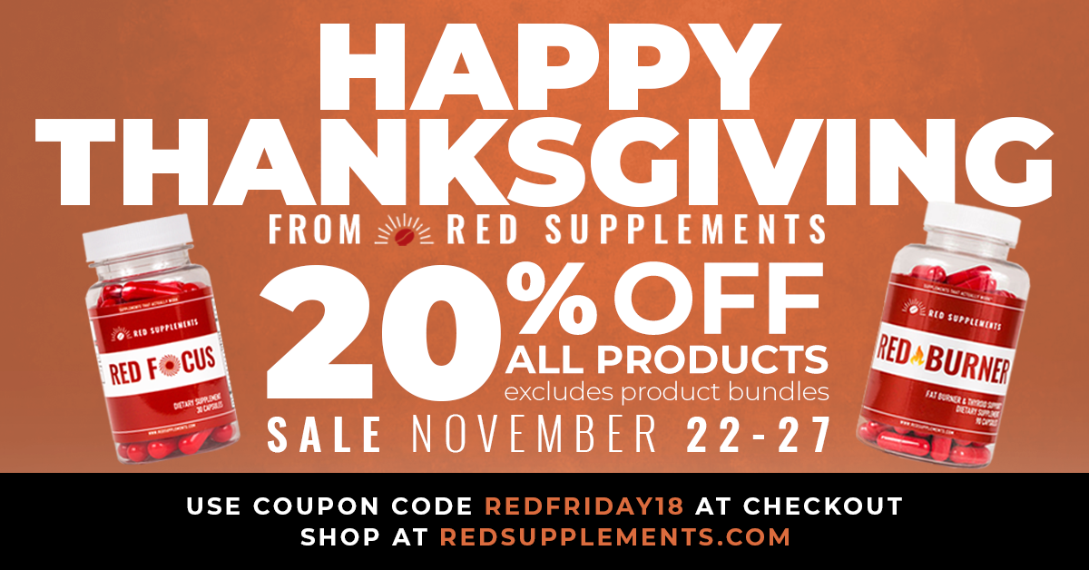 PS - Save 20% at Red Supplements from Black Friday through the end of Cyber Monday with this code: REDFRIDAY18