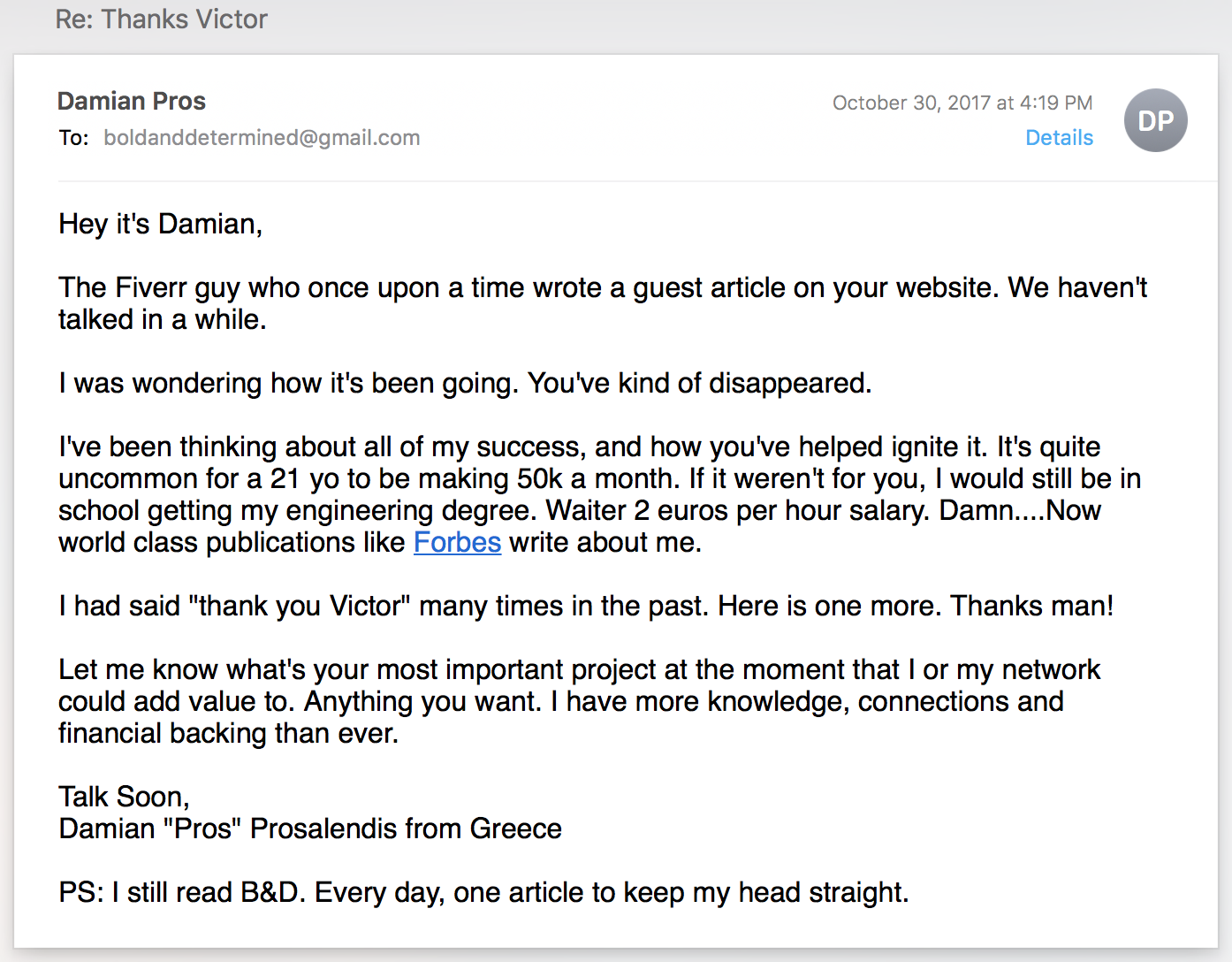- Here is the article Damian wrote: How This Kid in Greece Makes Full-Time Money on Fiverr Working Only Part-Time.