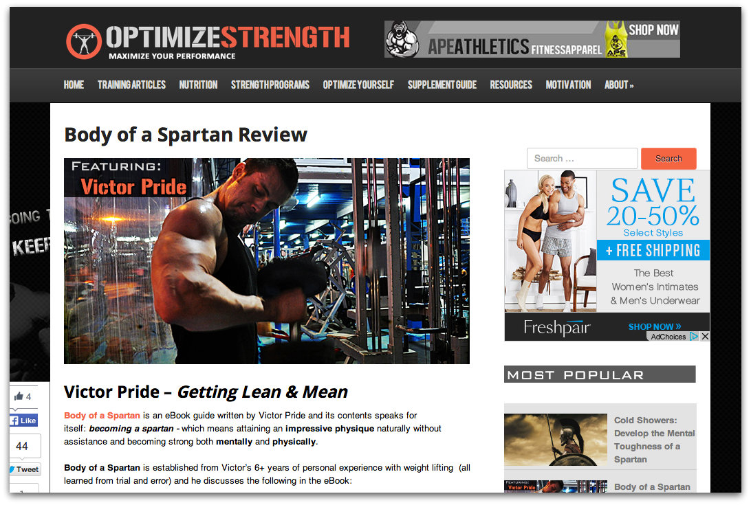 Below is an example of a guy who is doing it pro from the get-go. This guy has done the best review for Body of a Spartan I have ever seen. For all you guys trying to get started making money online THIS! is how you do it. Pro from the get-go. The website looks fantastic and the writing is fantastic. After reading the review I even want go back and buy my own book!
