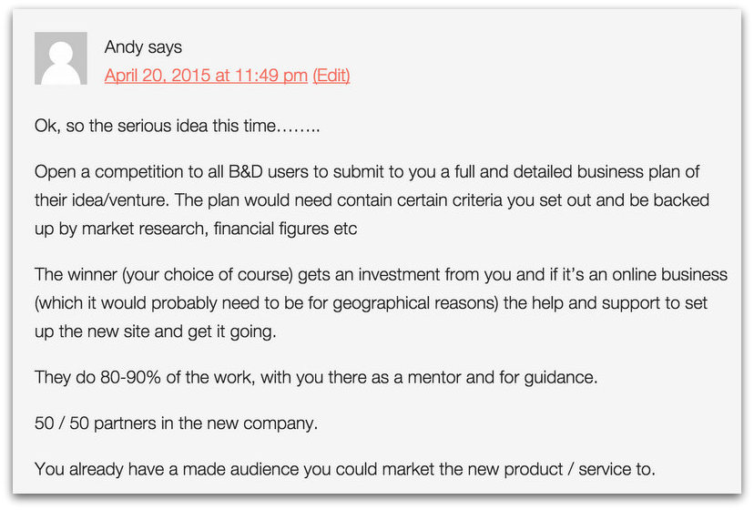 but again asking about durianrider, it doesn’t have much of anything to do with the product/idea competition here now does it?