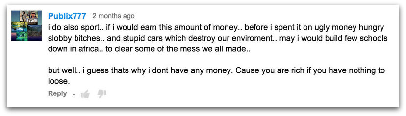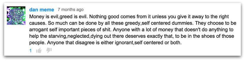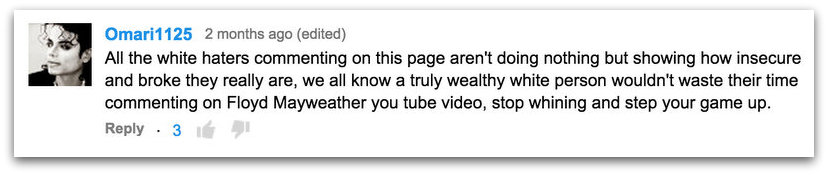 Floyd Mayweather Jr. is a rich and famous boxer who inspires jealously, hatred and envy in ordinary people. It only took a few moments to find some jealous comments on his YouTube videos.