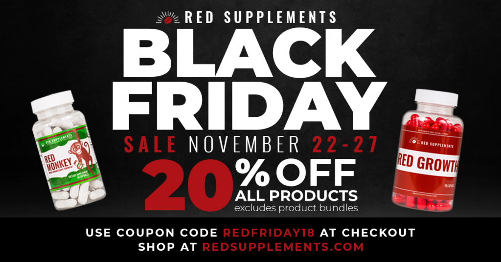 - Save 20% off at Red Supplements with this coupon code: REDFRIDAY18