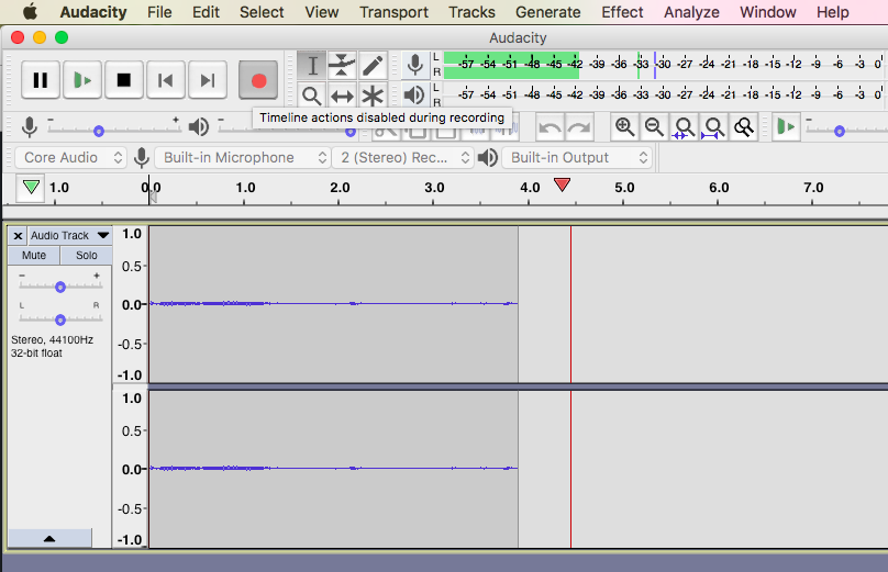 Step 8 - When you have assured your audio is recording and the sound level is fine, hit the RECORD button again and record your podcast.