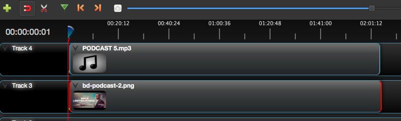 Click the RED LINE on the right end f your photograph track file and drag it until it perfectly matches the length of your MP3 track.