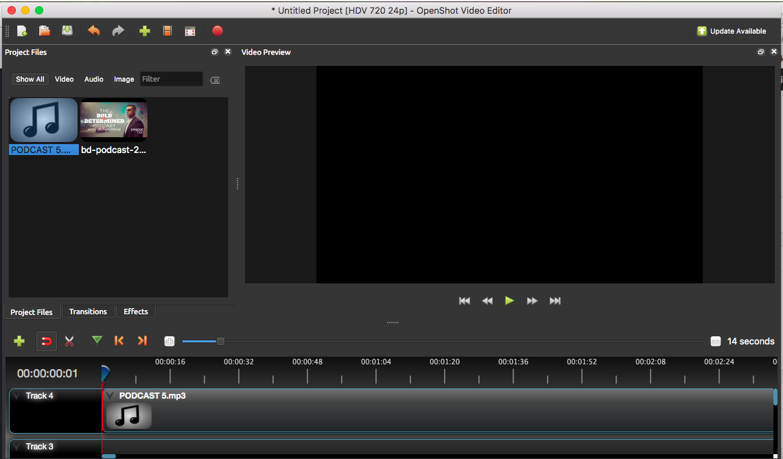 Step 2 - Drag and drop your MP3 file and the photograph you wish to use into the left-hand section of your OpenShot screen